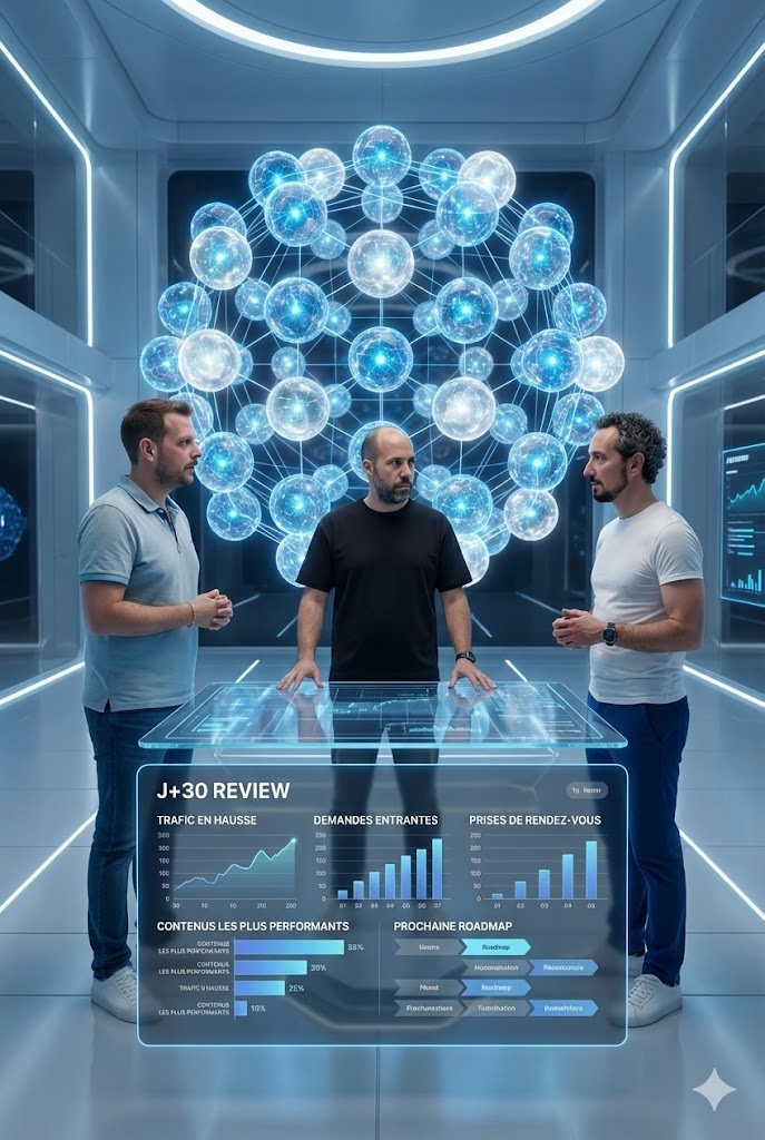 Et nous, on se revoit à J+30 pour faire le point sur ce qui apporte du trafic, des demandes et des rendez-vous. On vous guide sur la suite pour performer toute l’année sans y passer vos nuits.